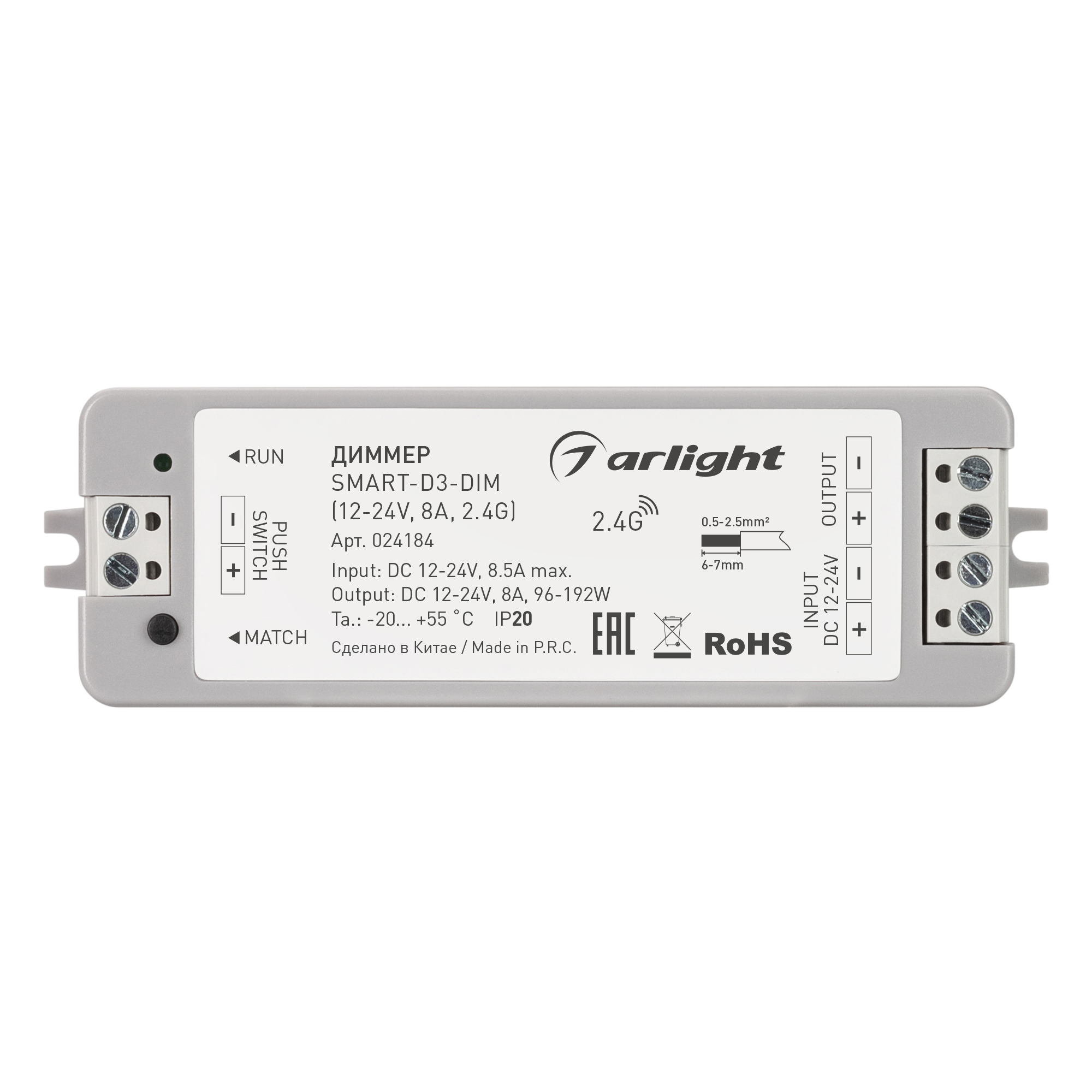 Диммер SMART-D3-DIM (12-24V, 8A, 2.4G) (Arlight, IP20 Пластик, 5 лет) 024184 в Тюмени