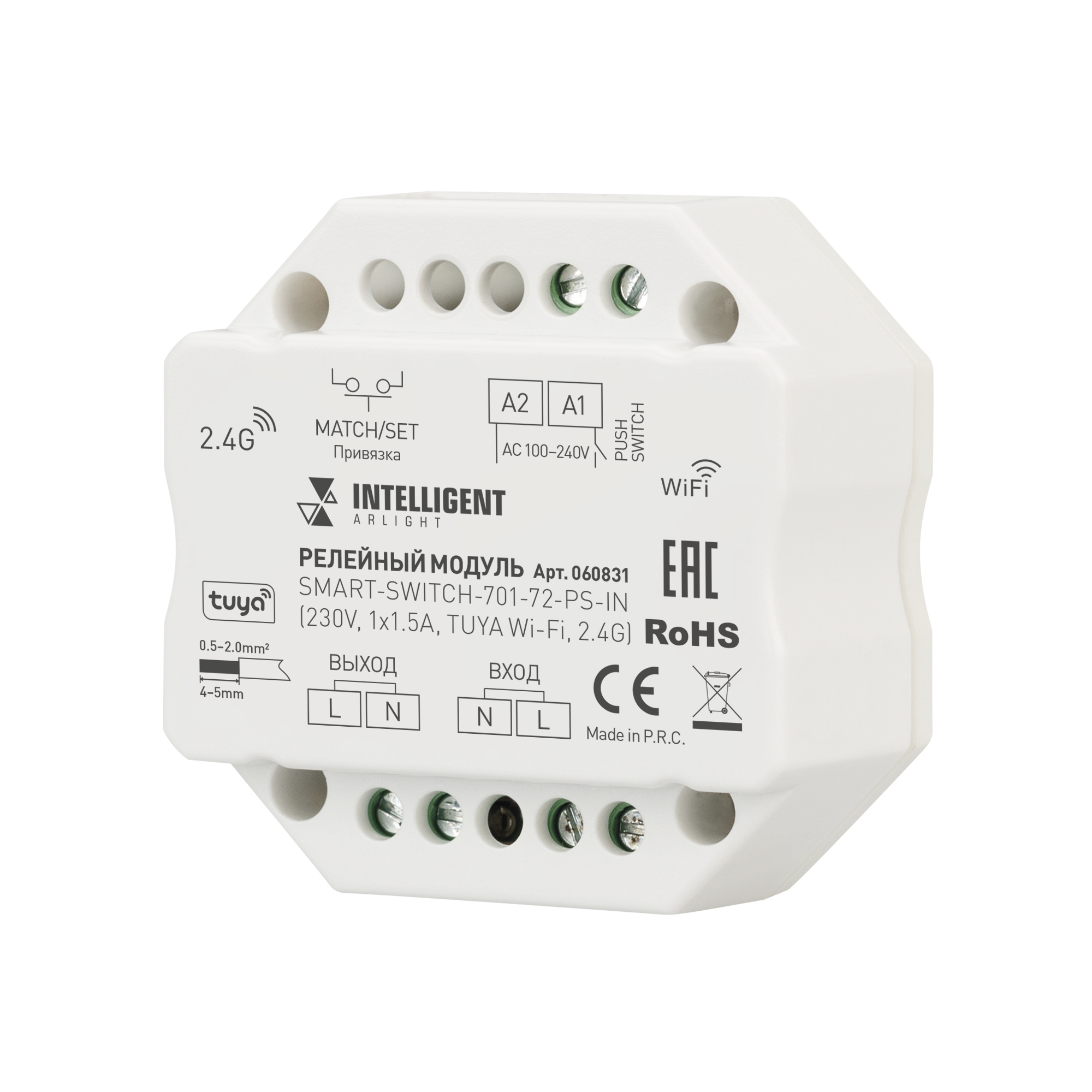 INTELLIGENT ARLIGHT Релейный модуль SMART-SWITCH-701-72-PS-IN (230V, 1x1.5A, TUYA Wi-Fi, 2.4G) (IARL, IP20 Пластик, 5 лет) 060831 в Тюмени