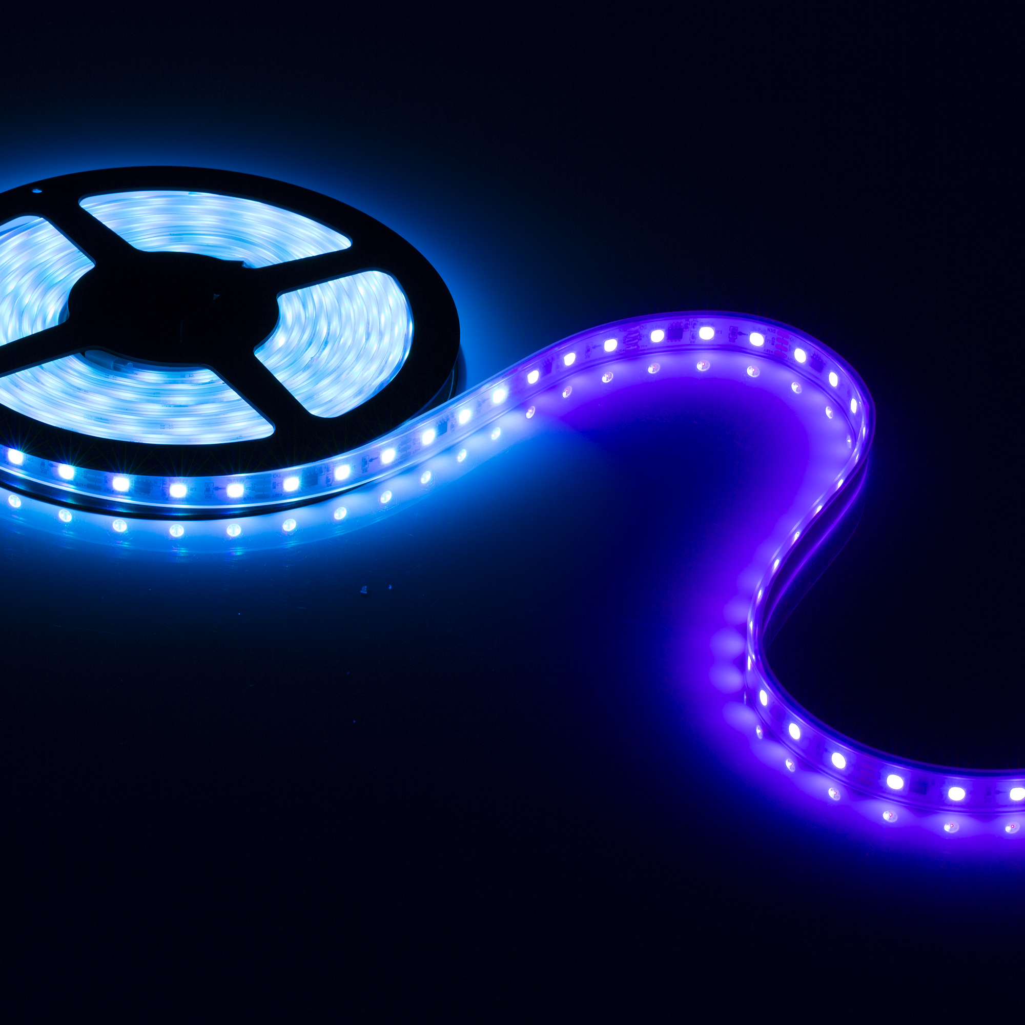 Герметичная лента «бегущий огонь» с драйвером 1804 для применения в сухих и влажных помещениях. RGB-светодиоды SMD 5060 (60 шт/м) с силиконовым покрытием, высокая степень пылевлагозащиты (IP66). Встроенный в ленту контроллер с циклическим автозапуском 300 программ (auto mode), возможно подключение внешнего контроллера. Ширина платы 12 мм, мощность 13.2 Вт/м, напряжение питания 12 В. Создание рекламных вывесок, оформление витрин, помещений для дискотек, ресторанов, театрализованных шоу, изготовление медиафасадов. Минимальный отрезок 50 мм.