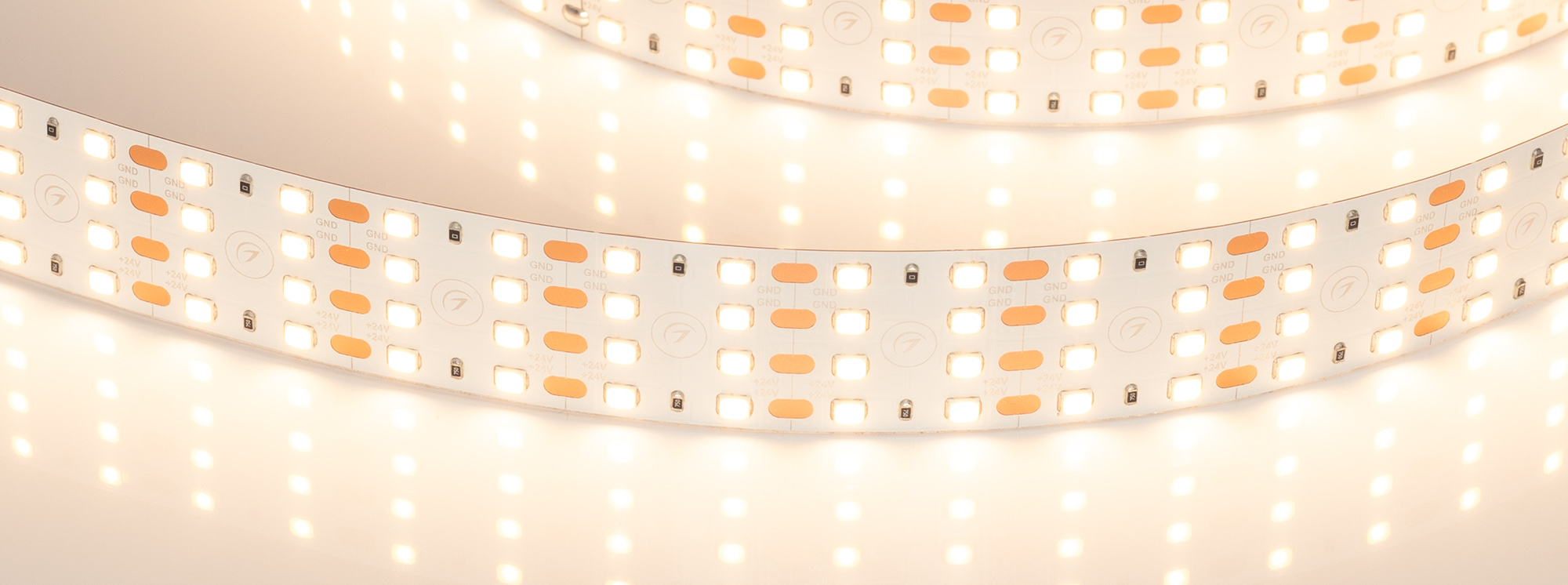 Широкая светодиодная лента UL серии A320, мощностью 30 Вт, шириной 24 мм, с расширенной гарантией 7 лет. Светодиоды SMD 2835, 320 шт/м, теплого белого цвета свечения (2700K). Высокий индекс цветопередачи CRI>90 обеспечивает точное восприятие цветов при освещении интерьеров жилых и коммерческих помещений. Световая эффективность 145 лм/Вт. Лента предназначена для создания светильников на основе алюминиевого профиля. Применяется для качественного, основного освещения. Подключение 3 м с двух сторон.