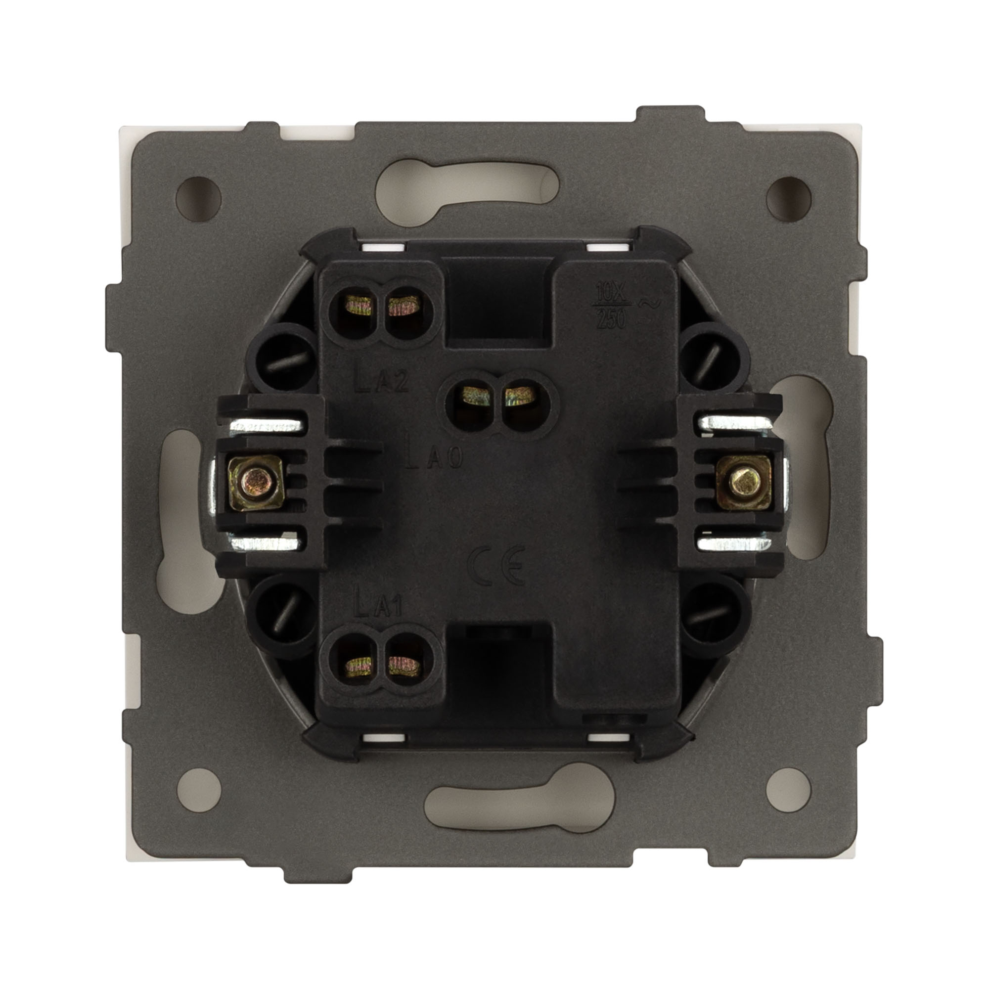 Механизм выключателя света совместим с рамками серии TENDO, создает утонченный минималистичный вид. Скрытый тип монтажа позволяет гармонично встроить в интерьер любого современного дизайн-проекта. Видимая часть механизма выполнена из высококачественного пластика белого цвета и имеет Soft-Touch покрытие, что придает изделию приятные тактильные ощущения и стильный внешний вид. Контактная часть присоединяется при помощи винтовых зажимов, позволяя надежно подсоединить механизм выключателя к питающим элементам. А усиленные распорные лапки двойного захвата надежно фиксируют механизм в установочном подрозетнике круглого сечения диаметром 60мм. Суппорт окрашен порошковой краской и выполнен из металла толщиной 1,5мм, что обеспечивает безопасность и уверенность в установке. На каждой стороне суппорта размещены фиксирующие элементы, позволяющие комбинировать механизмы в системы до 5 шт как горизонтально, так и вертикально.