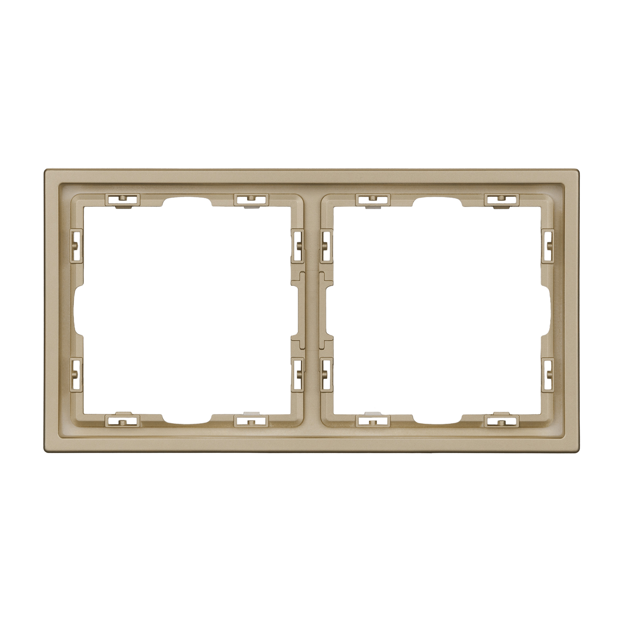 Рамка пластиковая на 2 поста, под встраиваемый механизм. Цвет - золотой, с Soft-Touch покрытием. Среднего уровня герметичности IP20. Ориентация монтажа горизонтальная.