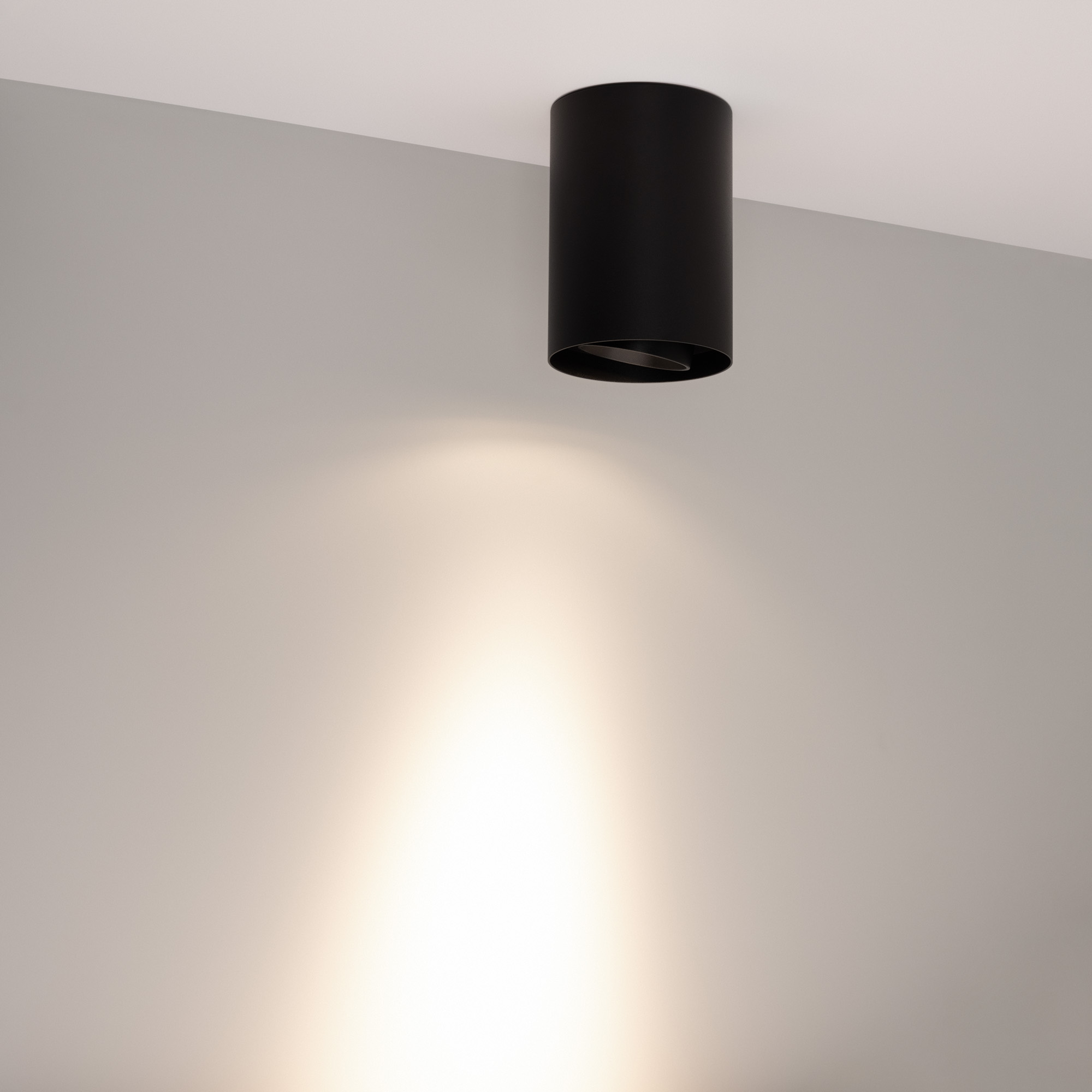 Накладной интерьерный светильник. Мощность 10 Вт, св. поток 970 лм, 93 лм/Вт, дневной 4000 K, CRI>90, угол 15°, регулируемое направление луча 40° (20+20), поворотный световой модуль вокруг своей оси на 340°, UGR <18, напряжение питания 230 В. Черный круглый корпус из алюминия, степень защиты IP54. Размер: диаметр 86,5 мм, высота 120 мм. Монтаж накладной. Драйвер 27-43 В, 250 мА, пульсация <1%.