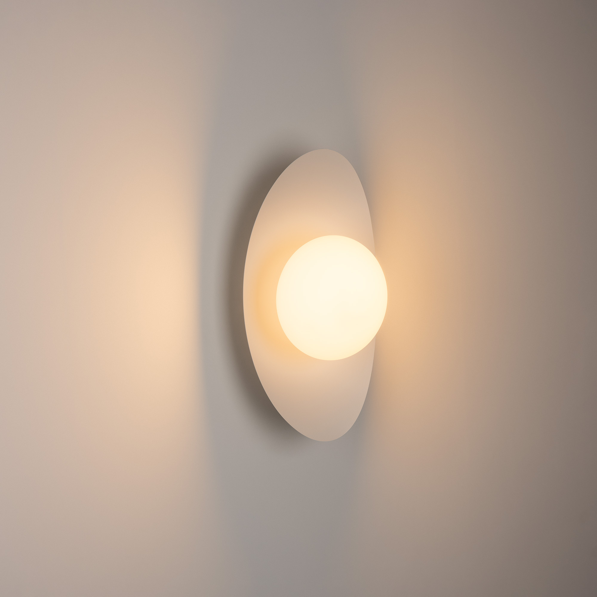 Декоративный настенный светильник. Мощность 6 Вт, св. поток 325-340 лм, 50-52 лм/Вт, теплый 2700 K,теплый 3200К, дневной 4000 K (переключаются) CRI>92, угол 150°, напряжение питания 230 В. Фигурный корпус из алюминия белого цвета, экран из матового стекла, степень защиты IP20. Размер: габариты световой части: Ø145x70 мм, габариты чаши: Ø110 x 42 мм. Монтаж накладной. Встроенный блок питания: 12В DC, 0,75 А, пульсация <2%. Встроенный диммер TOUCH-DIM.