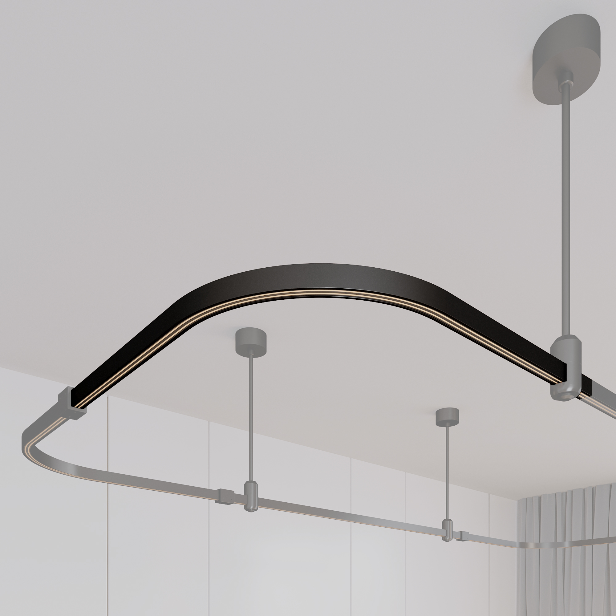 Трек TRACK-ANGLE-A-1722-500х500, мягкий угол 90°. В сочетании с аксессуарами и светильниками предназначен для создания простых и сложных (протяженных, многоуровневых) осветительных конструкций с мягкими углами. Монтируется подвесным способом. Размер: 500 x 500 x 22 мм. Шинопровод рассчитан на работу с безопасным напряжением DC48В. Изготавливается из алюминия, окрашенного в черный цвет. Возможна резка в произвольном месте. Аксессуары, светильники и источники питания приобретаются отдельно.